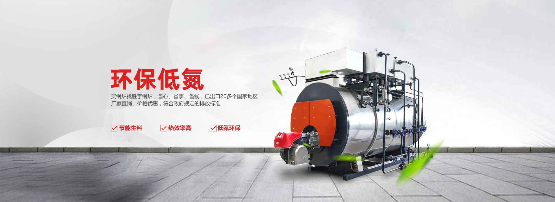 太康縣勝宇鍋爐制造有限公司主導產品有:一體式冷凝鍋爐、SZS 燃氣鍋爐、燃氣蒸汽鍋爐、燃氣熱水鍋爐等